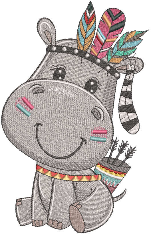 Bring the adventurous spirit of the African savanna to your stitching projects with this delightful hippo warrior motif. This captivating design showcases a mighty hippopotamus wielding a traditional bow and arrow, combining the raw power of Africa's wildlife with tribal artistry.