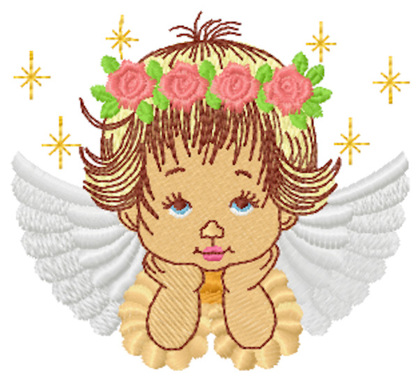 Blonde angel with a wreath of roses embroidery design