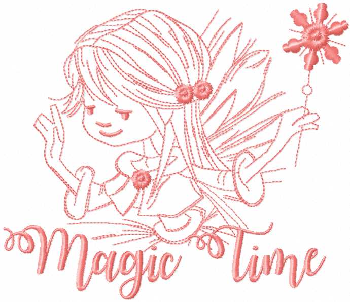 Fairy magic time embroidery design