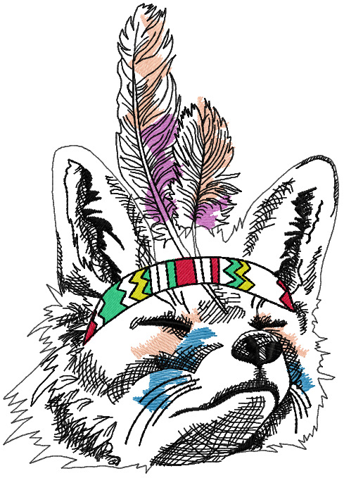 Indian fox sketch embroidery design