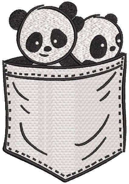 Two pandas in your pocket embroidery design