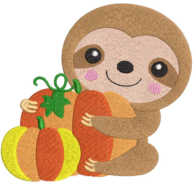 Sloth with pumpkins embroidery design