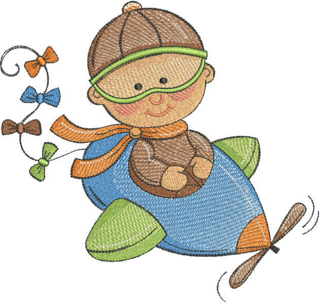 Transform your little one's wardrobe with this endearing aviation-themed embroidery collection. This delightful design showcases an adorable pilot character that captures the spirit of adventure and dreams of soaring through the clouds.
