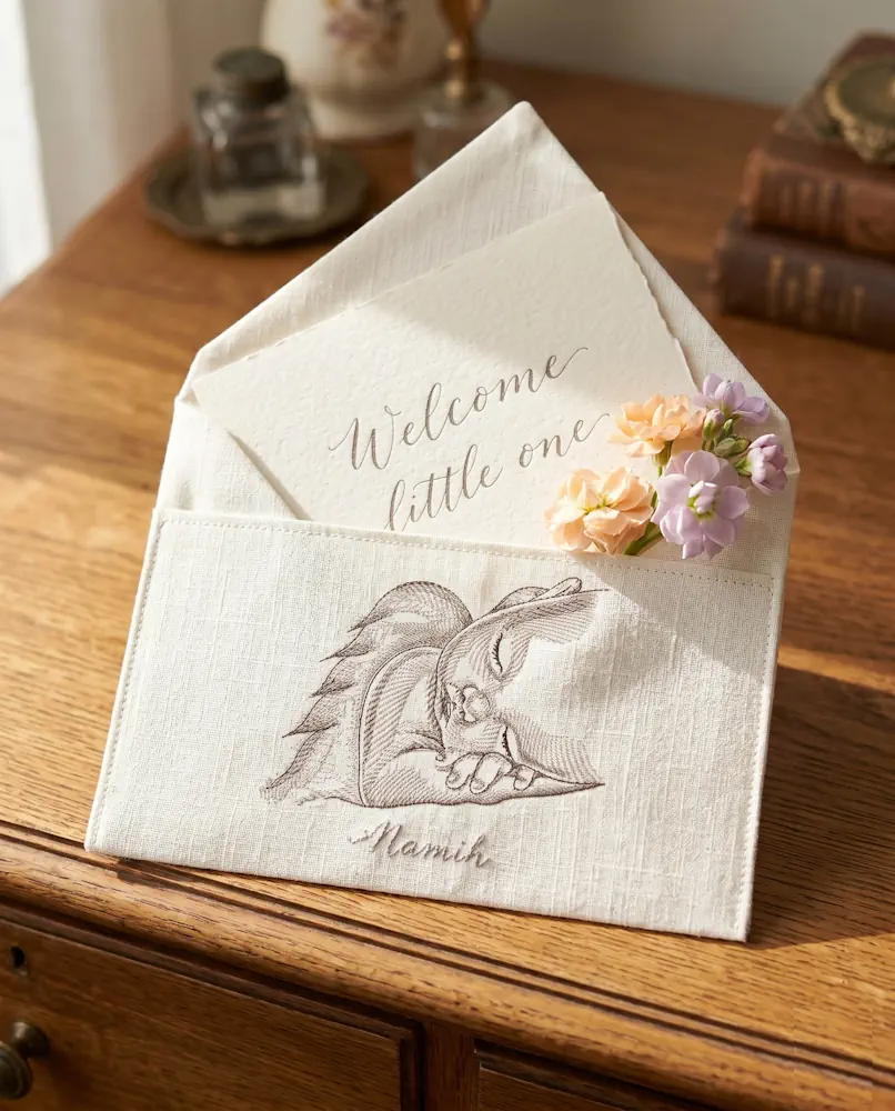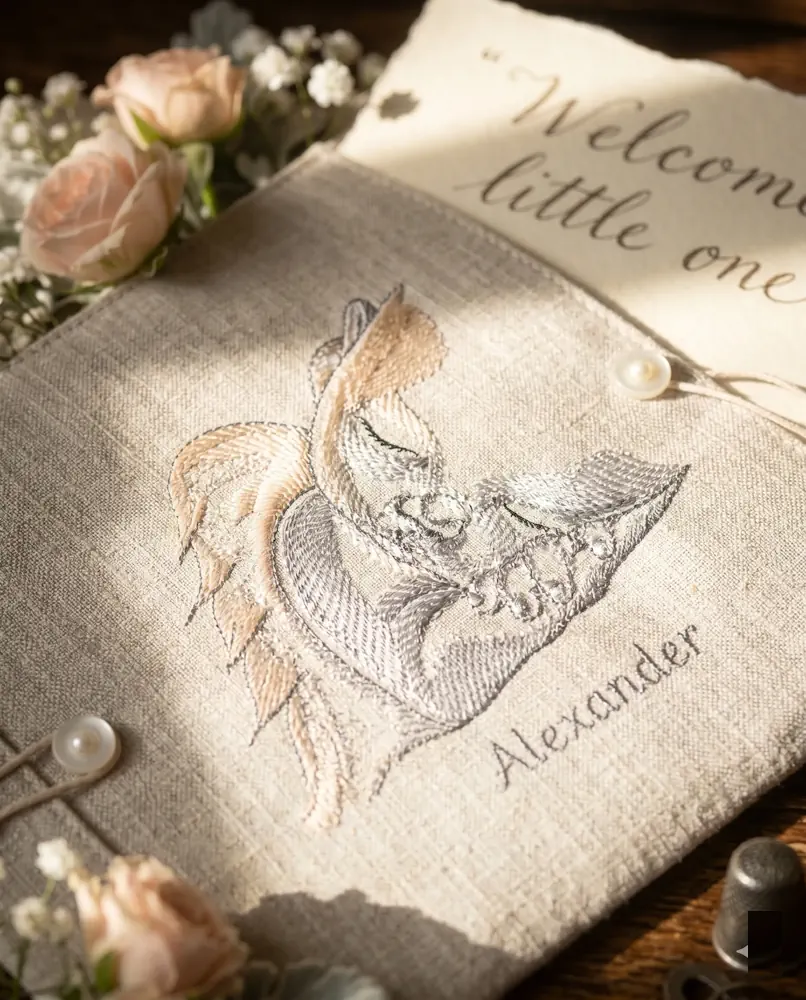 Perfect for creating heartfelt keepsakes, this versatile stitching pattern transforms ordinary items into treasured memories. Embroider this gentle design on: