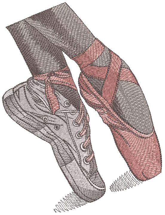This captivating dance-inspired design showcases the beautiful contrast between casual sneakers and elegant pointe shoes, celebrating every dancer's journey from studio practice to stage performance. The artistic motif captures the essence of versatility in dance, making it an ideal choice for anyone who appreciates both comfort and grace.
