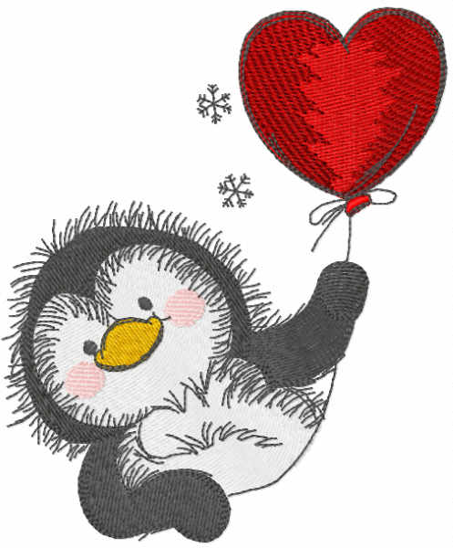 Christmas penguin with balloon embroidery design