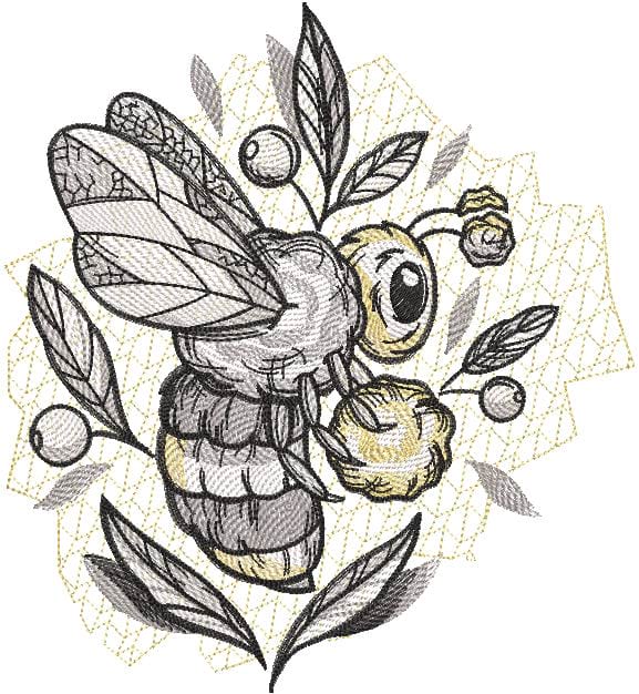 This delightful stitching design captures a busy bee in mid-flight, gracefully carrying precious honey back to the hive. The charming motif brings nature's sweetness directly to your creative projects with intricate details that showcase the bee's industrious spirit.