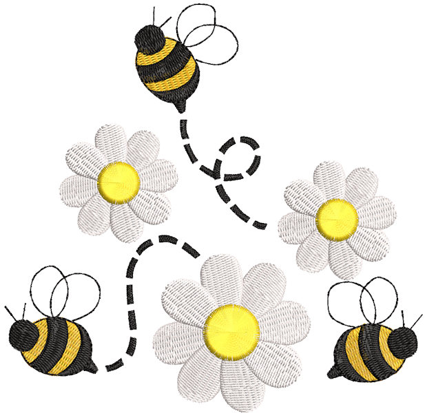 Bumble Bee and Daisy Flowers embroidery design