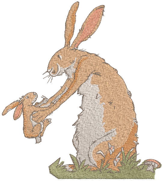 Capture the tender bond between parent and child with this adorable woodland bunny artwork. Our 'Guess How Much I Love You' stitching pattern features a loving mother rabbit embracing her little one, bringing springtime charm and gentle warmth to your creative projects.
