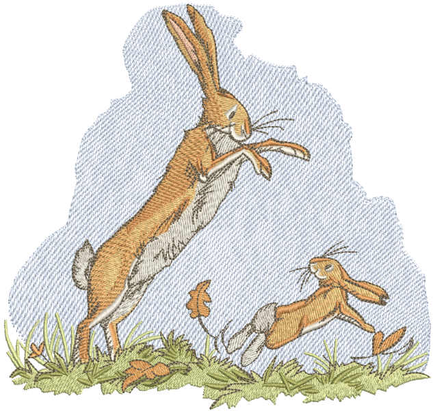 Mother and Baby Bunny Playing Together Embroidery Design