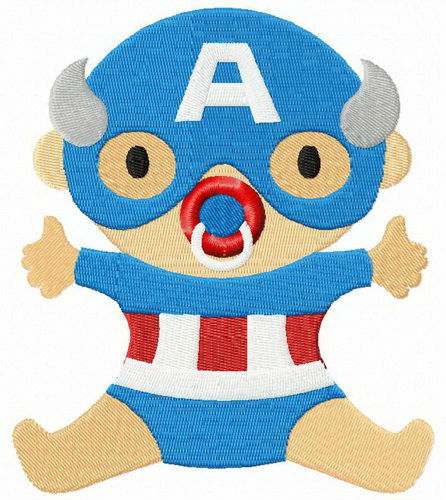 Bring heroic charm to your stitching projects with this delightful Baby Captain America motif. This whimsical superhero design captures the spirit of bravery and patriotism in an adorable, child-friendly style. Perfect for celebrating your little one's love of iconic heroes, this creative pattern combines the classic shield imagery with a playful baby aesthetic.