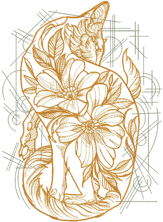 Feline Elegance Meets Botanical Beauty in This Embroidery Design