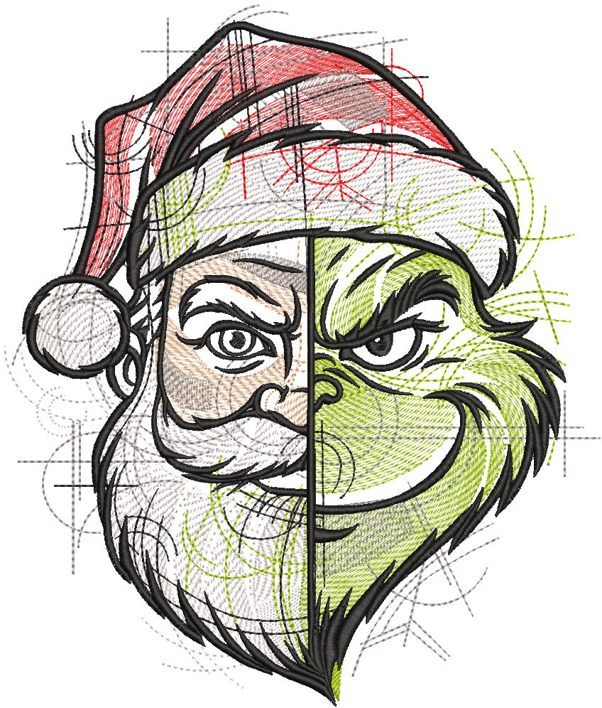 Santa Grinch Two-Sided Embroidery Design for Festive Stitching