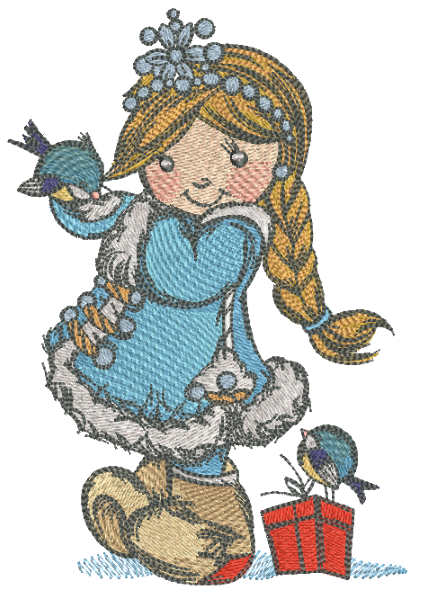 Snow Maiden with birds embroidery design