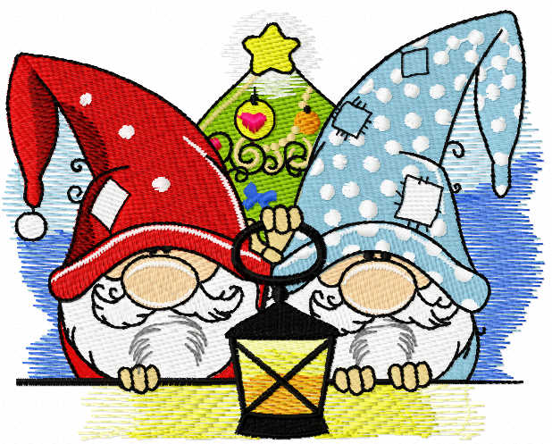 Charming Christmas Dwarves with Lantern Embroidery Design