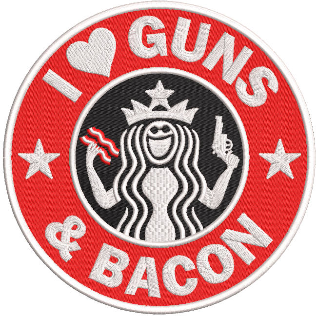 Guns and Bacon Embroidery Design for Coffee Enthusiasts