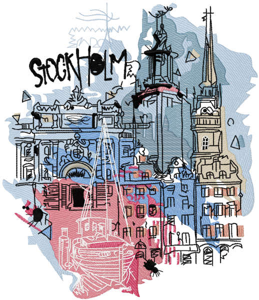 Stockholm city art embroidery design