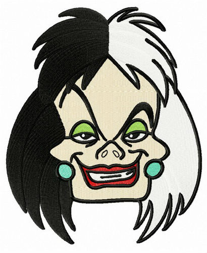 Bring the iconic villainess to life with this striking embroidery pattern that captures Cruella's unmistakable edge and glamorous style. This daring stitched motif features her distinctive character essence, complete with fashion-forward flair and that signature villainous charm that makes her unforgettable.