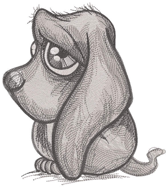 Sad puppy grayscale embroidery design