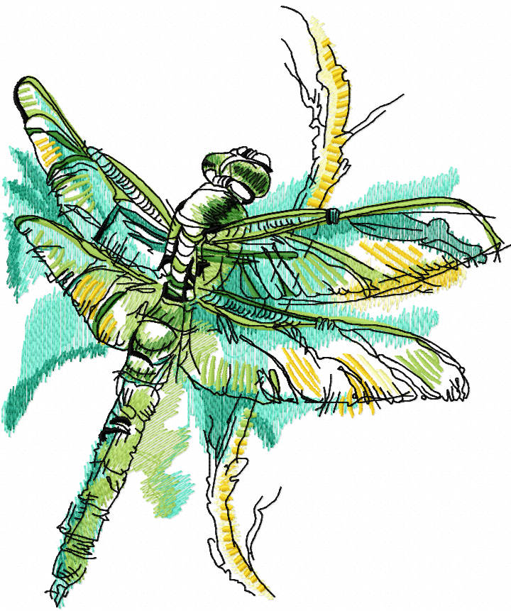 Beautiful Dragonfly on Bush Branch Embroidery Design