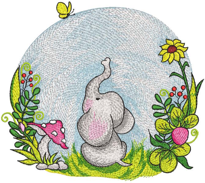 Whimsical Baby Elephant on a Sunny Day Embroidery Design