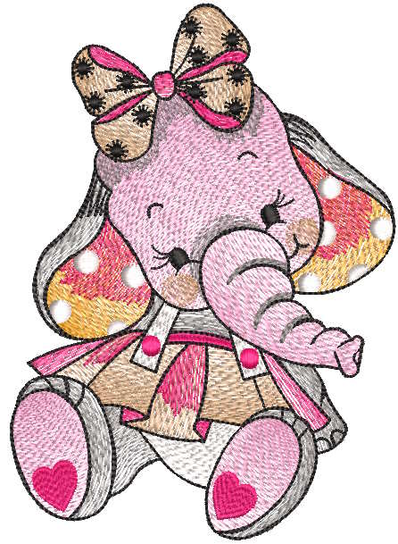 Infuse a touch of whimsy into your creations with our enchanting elephant baby girl in dress embroidery design. This delightful stitched motif captures the playful essence of a sweet elephant adorned in a charming dress, making it ideal for any baby-themed project.