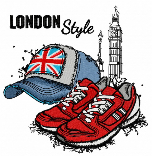 London style: cap and sneakers embroidery design