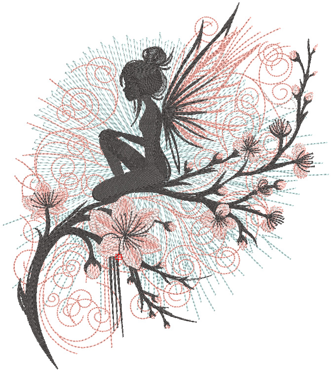Fairy sitting on a blossoming sakura embroidery design