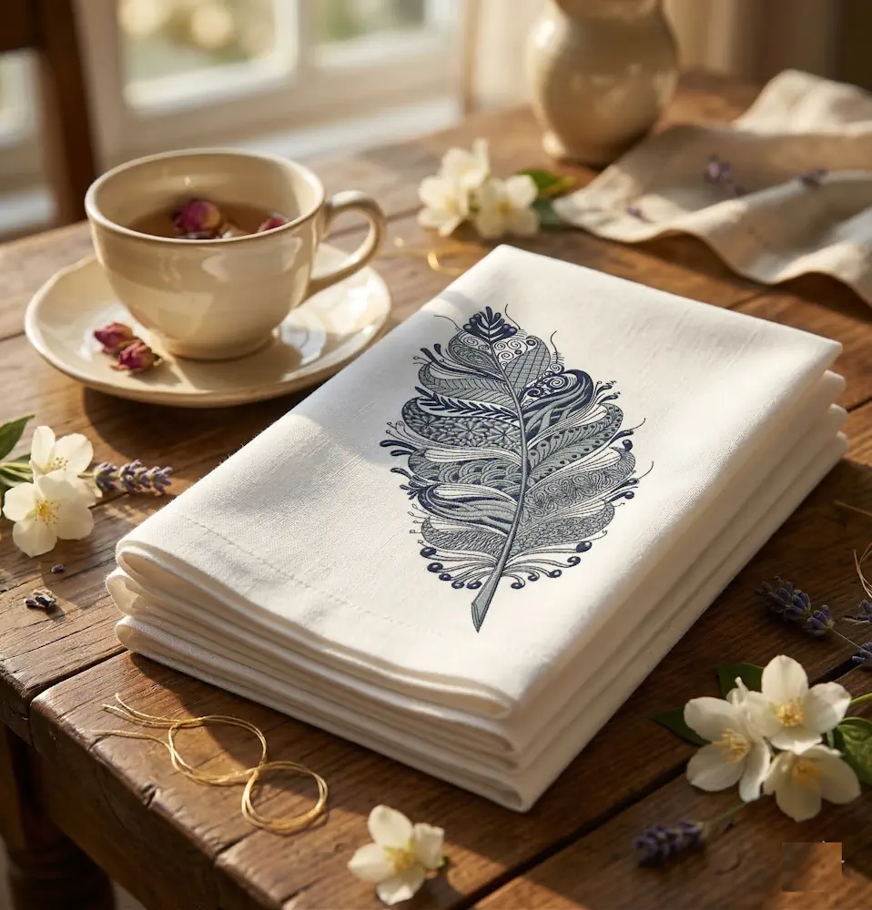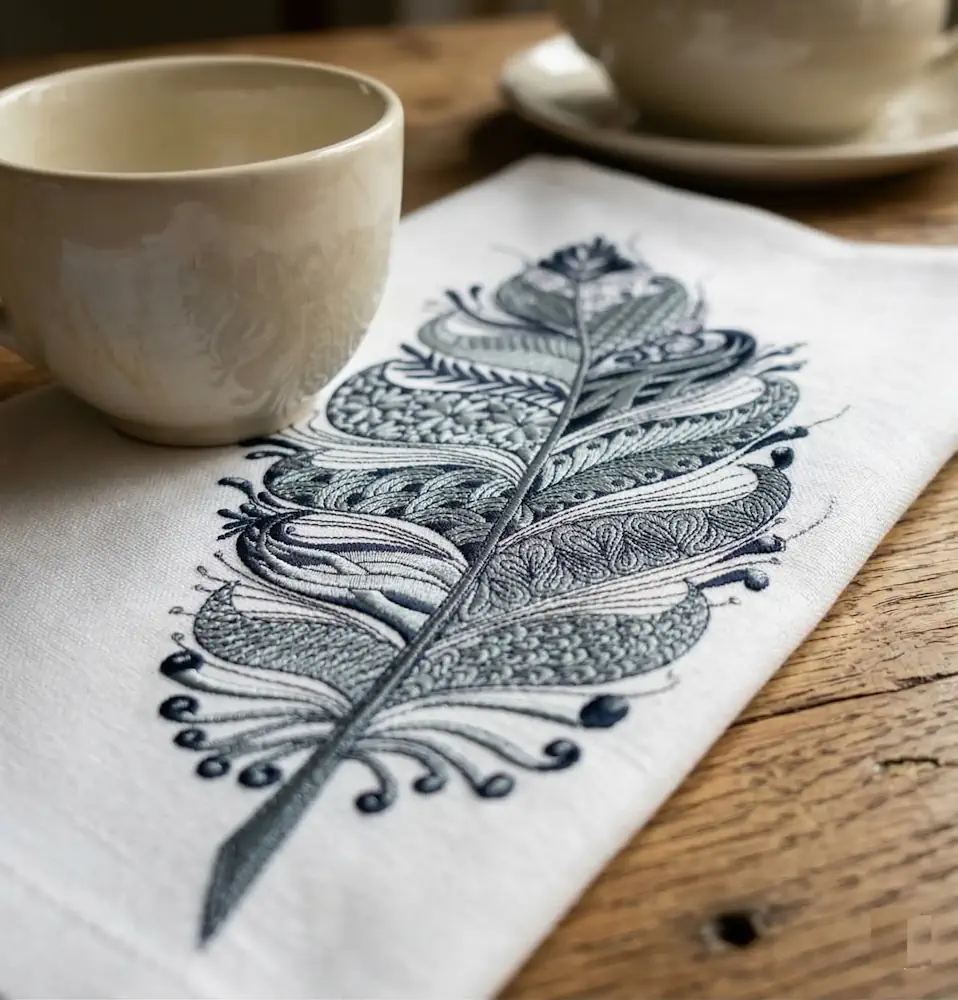 The feather design boasts a stitch count of approximately 5,000, making it ideal for both beginner and experienced stitchers. With a recommended hoop size of 5x7 inches, it fits a variety of embroidery machines. Available in multiple formats including DST, PES, JEF, HUS, EXP, VP3, and XXX, you'll have no trouble using this design on your favorite embroidery software.
