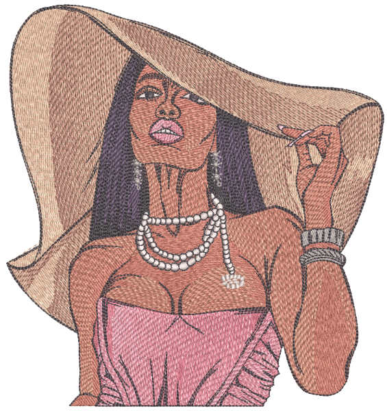 Woman in awide-brimmed hat embroidery design
