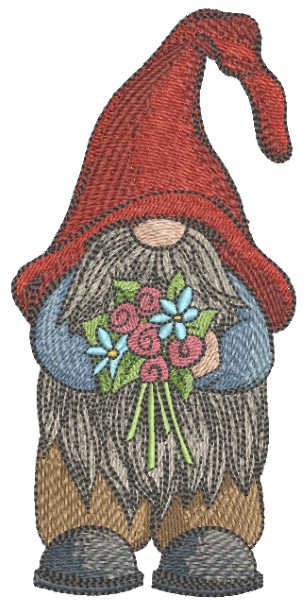 Delightful Dwarf with Flowers Embroidery Pattern