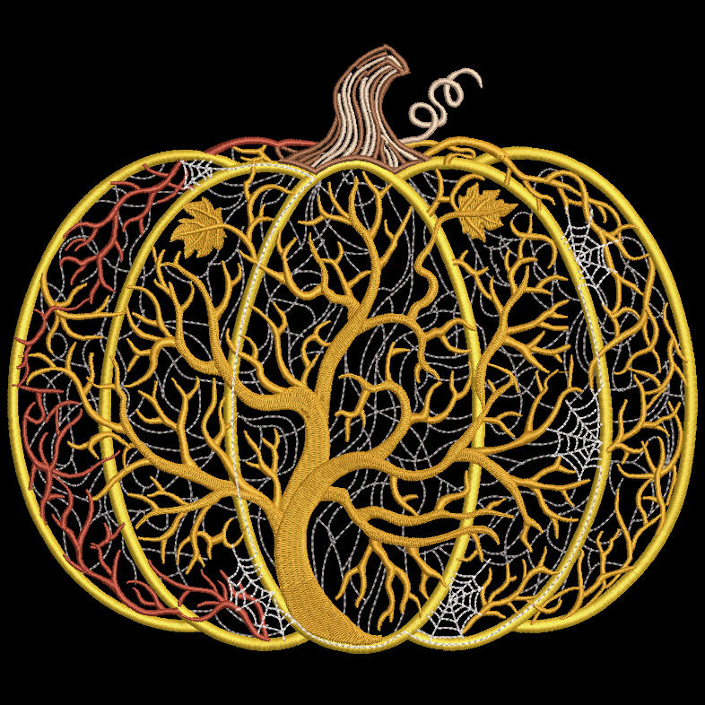 Halloween pumpkin magic tree embroidery design