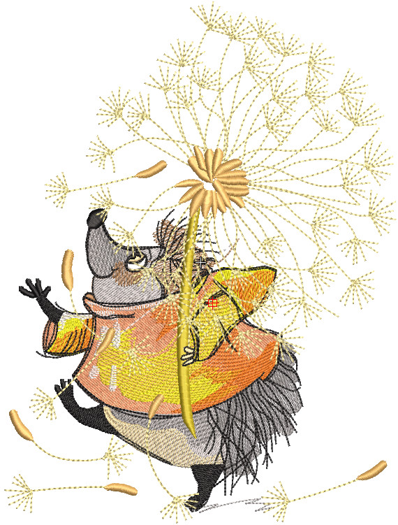 Hedgehog walking with a dandelion embroidery design