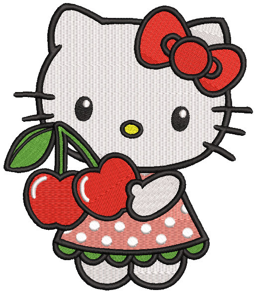 Bring a touch of sweetness and nostalgia to your stitching projects with this delightful Hello Kitty cherry motif. This whimsical pattern captures everyone's favorite bow-wearing character alongside adorable cherry accents, creating a design that's perfect for fans of this iconic character and anyone who loves charming, playful embroidery.