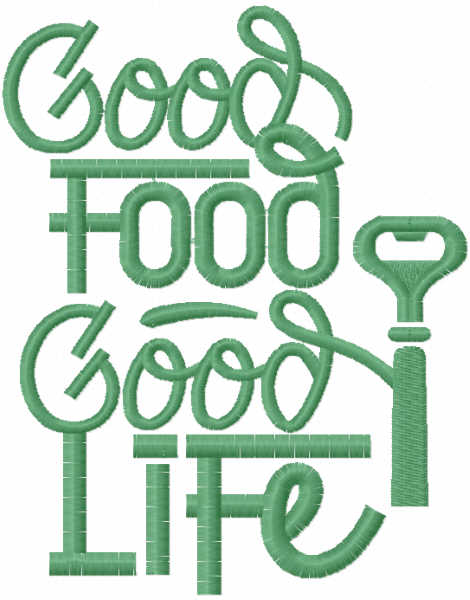 Good food good life embroidery design