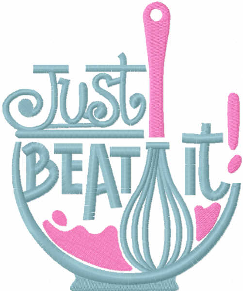 Bring a playful twist to your cooking space with the Just Beat It embroidery design. Perfect for those who love to cook and appreciate a dash of humor, this design is ideal for embellishing kitchen textiles like aprons, dish towels, and table linens. With its vibrant colors and catchy phrase, it makes a fabulous gift for culinary enthusiasts and home chefs alike.