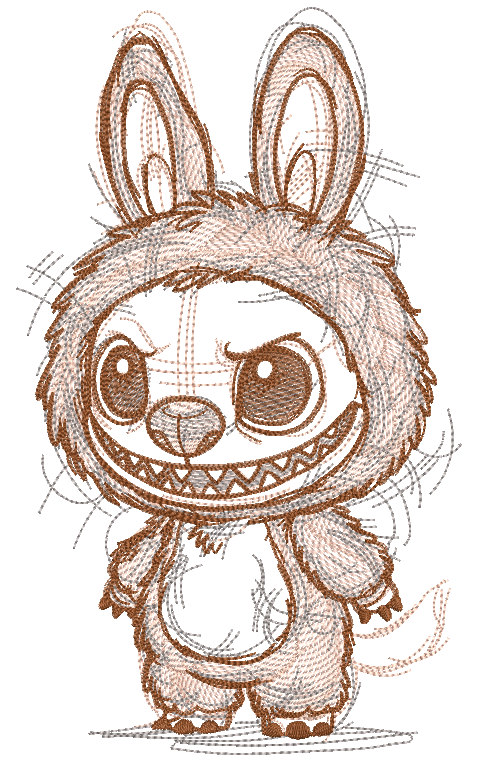 Labubu sketch style embroidery design
