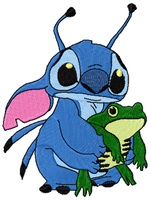 Stitch and Frog Embroidery Design – Tropical Adventure Awaits