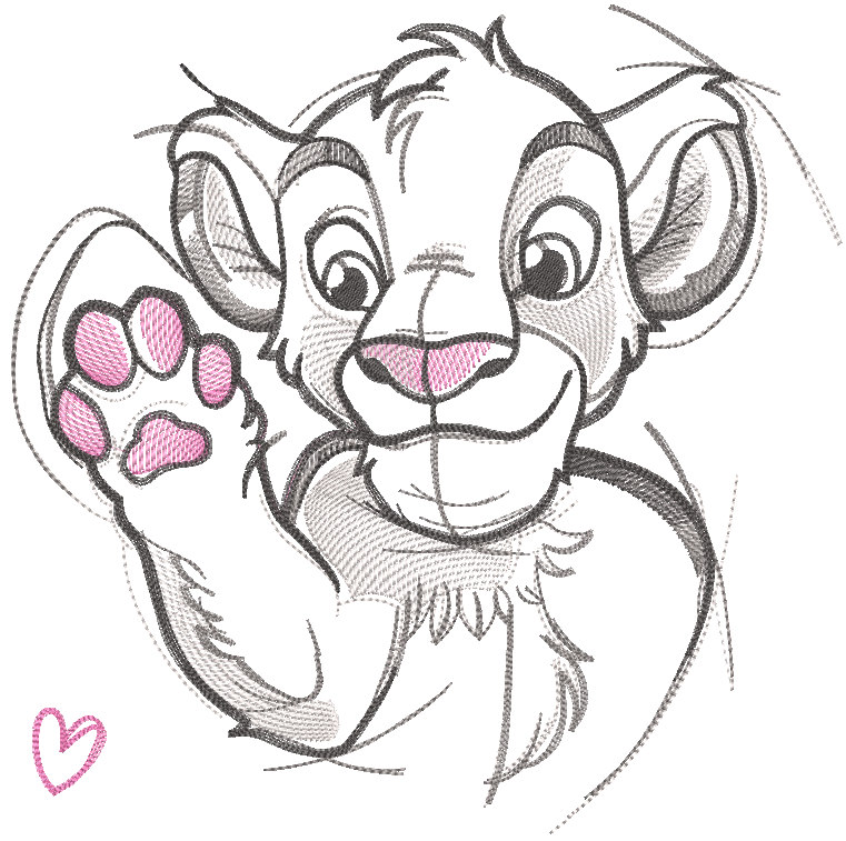 Celebrate the majesty of the Pride Lands with this captivating Simba sketch pattern. This safari stitching motif captures the beloved lion character in a tender, artistic style that speaks to fans of all ages. Whether you're stitching for nostalgia or creating heartfelt gifts, this jungle embroidery brings adventure and warmth to every project.
