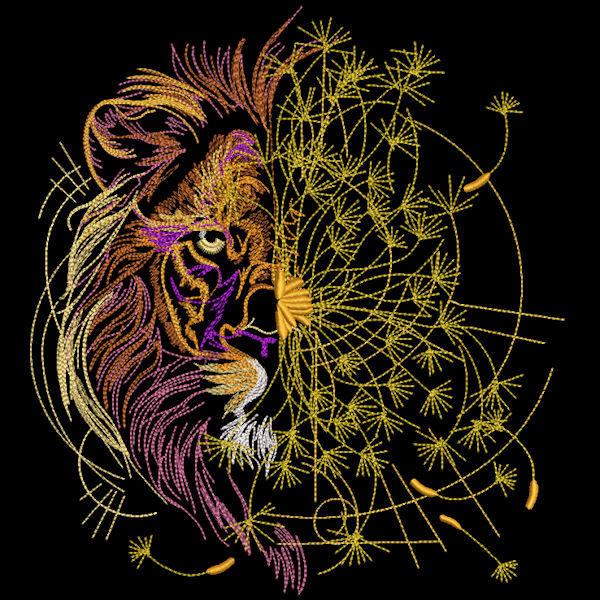 Unleash your adventurous spirit with our Lion Chamomile embroidery design set against a striking black background. This stunning piece captures the essence of a fierce lion intertwined with delicate chamomile flowers, making it a captivating addition to your embroidery collection. Perfect for those who appreciate wildlife motifs and the beauty of nature, this design will elevate any project.