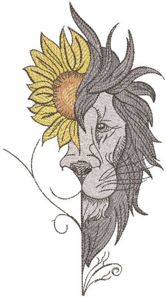 Vibrant Lion Sunflower Embroidery Design