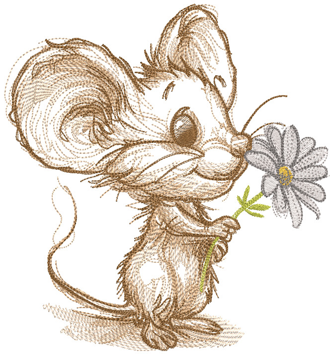 Mouse with chamomile sketch embroidery design