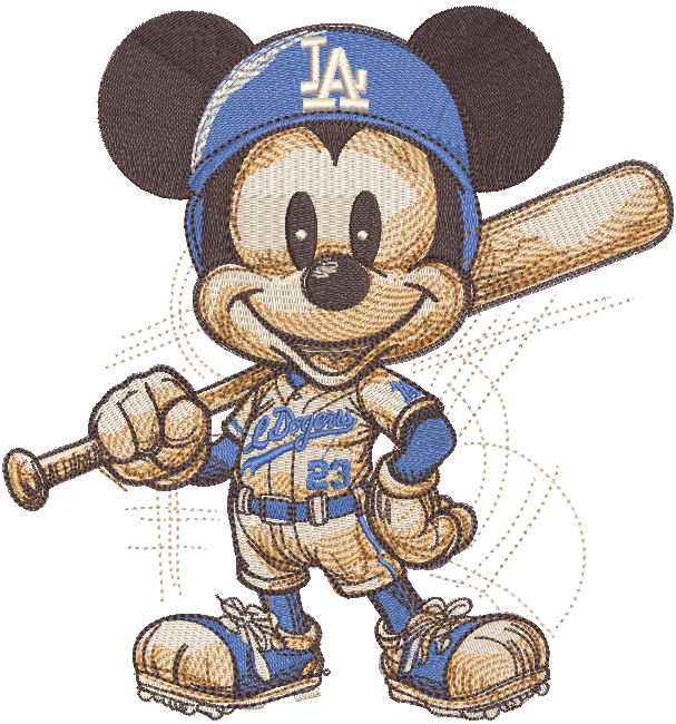 Mickey Mouse Dodgers Embroidery Design – Playful Baseball-Themed Pattern
