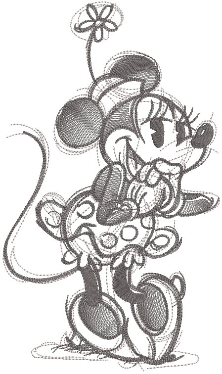 Minnie Mouse Greyscale Sketch Embroidery Design