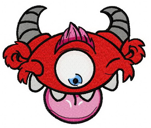 Red horny monster embroidery design