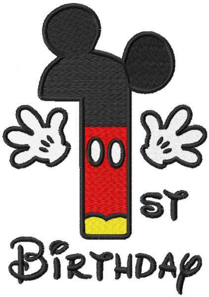 First birthday mickey embroidery design