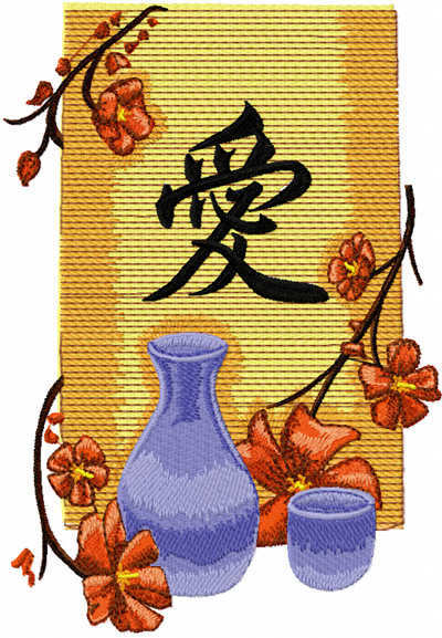 Oriental Vase with Flowers embroidery design