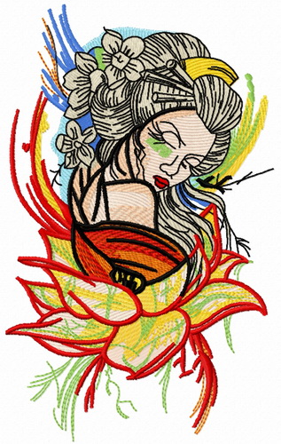 Sunset geisha embroidery design