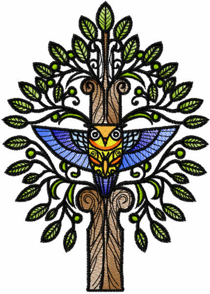 Mystical owl tree embroidery design