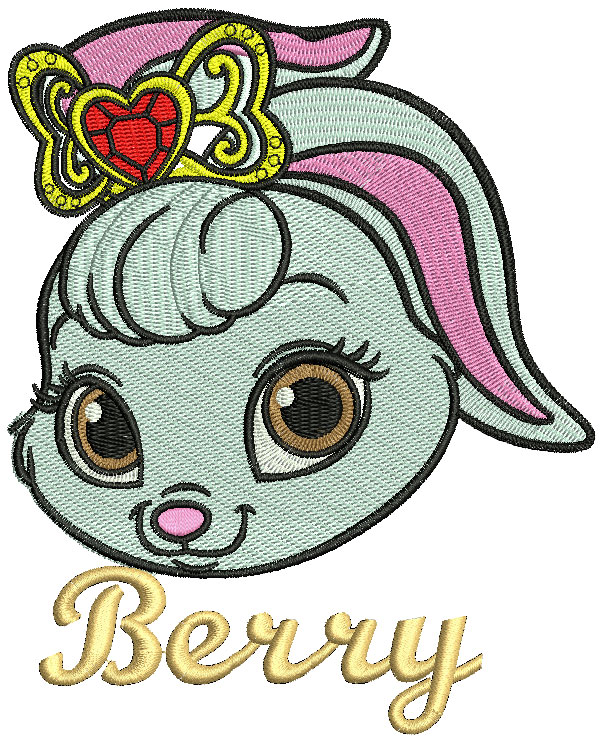 Berry is a little fluffy rabbit. She was hiding beneath a blueberry bush when Snow White found her. They immediately became friends. Palace Pets Berry machine embroidery design will be an original decoration of girl's accessories.